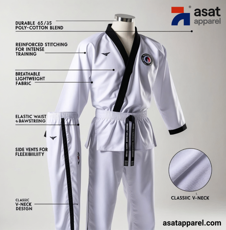 ASAT Apparel International Industries Limited is a leading manufacturer of high-quality Taekwondo uniforms, providing fully customized doboks specially made to meet the needs of athletes, dojos, and organizations worldwide. We specialize in designing WT-Approved Taekwondo uniforms with premium materials, ensuring durability, flexibility, and optimal performance. Whether you’re a beginner or a professional competitor, we craft doboks that enhance your training and competition experience.