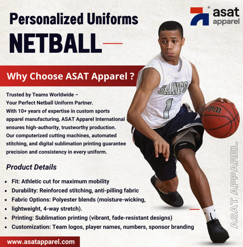 Order your custom netball uniforms today and elevate your team’s performance with ASAT Apparel International!